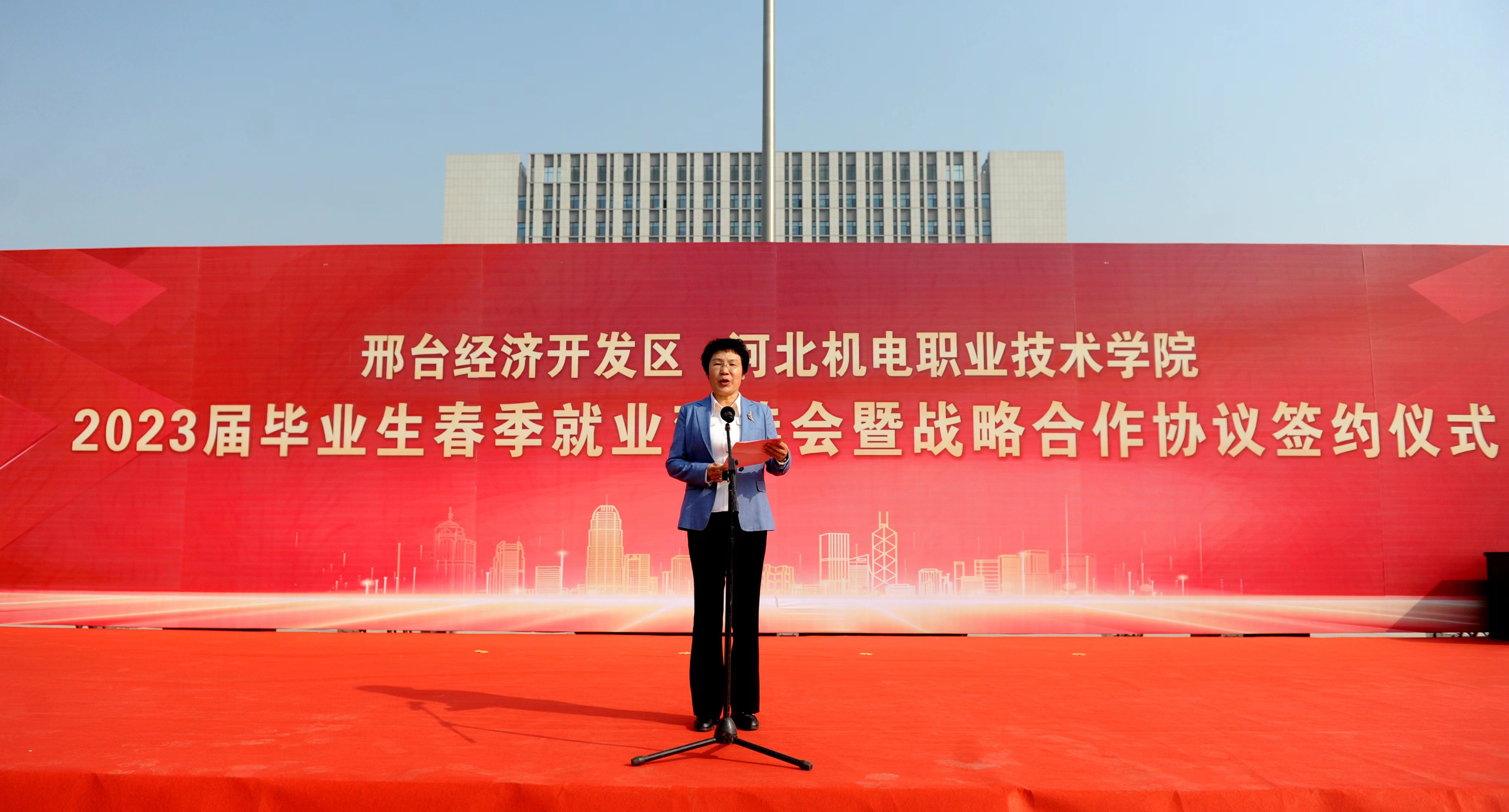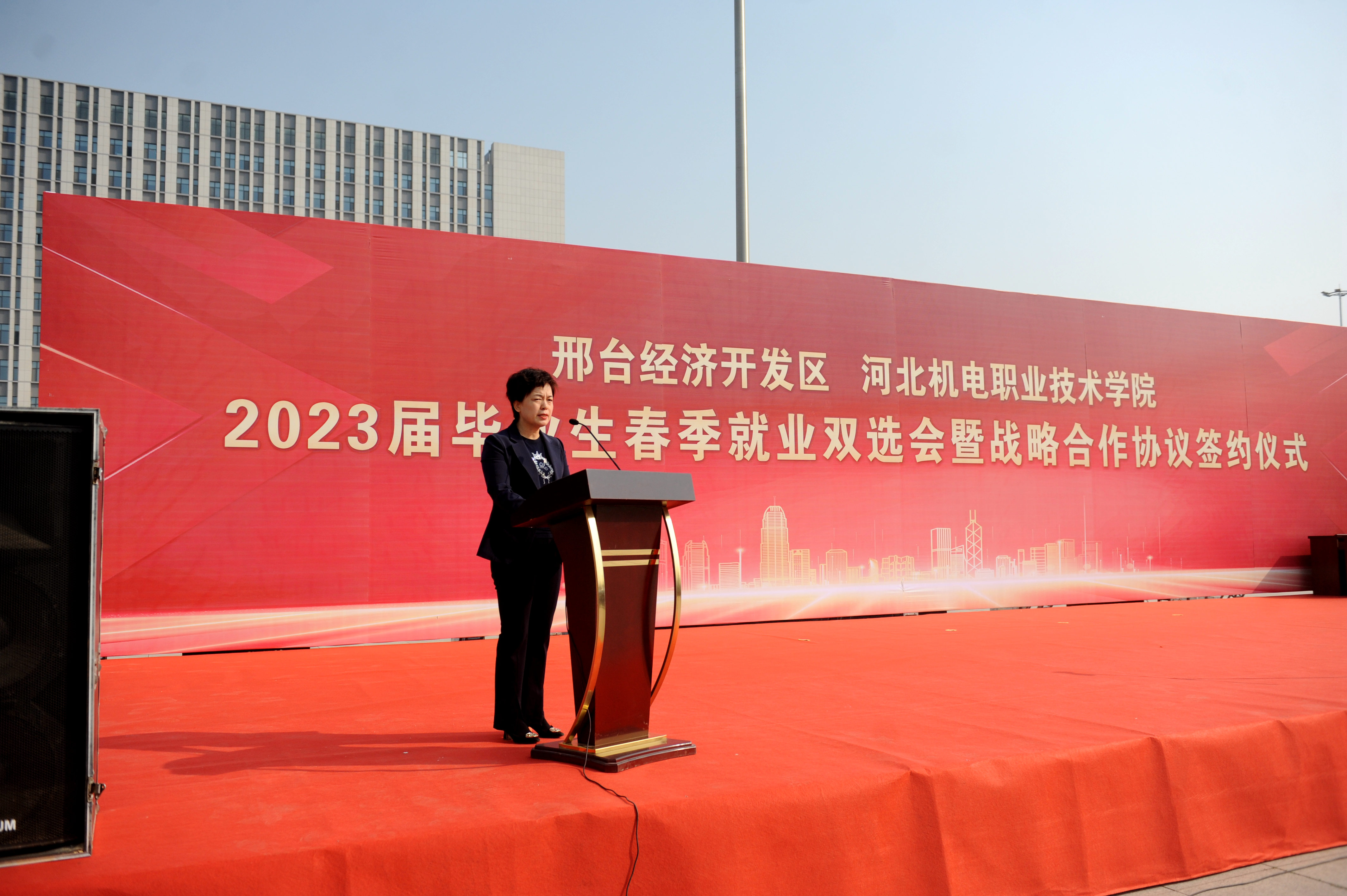 商黎英在致辞中代表开发区党工委、管委会,向提供就业岗位的企业表示衷心的感谢,并向前来求职应聘的大学生表示热烈的欢迎。她表示,邢台经济开发区作为全市项目集聚的主平台、高质量发展的主引擎、招商引资的主力军和项目建设的主战场,率先落实“万亩千亿大平台”产业发展战略,确立了“3+2”主导产业发展方向,大力发展城市经济新业态,加快培育新的经济增长点。
