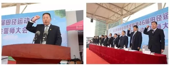 河北省第20届大学生运动会誓师大会上,曹振军带领全体师生进行集体宣誓。