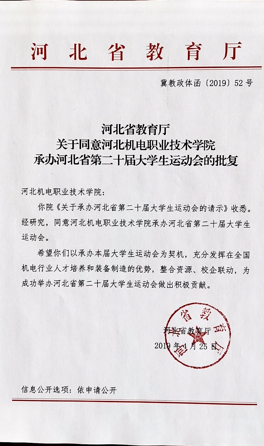 《河北省教育厅关于同意欧宝平台app苹果版 承办河北省第二十届大学生运动会的批复》