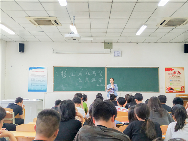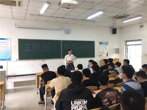 各系部辅导员老师以拒绝“两非两贷”为主题开展班会,通过讲解校园贷、非法集资的实例,指出当前的严峻问题。说明近年来,一些犯罪分子打着网贷、小额贷款公司的旗号,明为发放贷款,暗地里行诈骗之实,以“虚增债务”“肆意认定违约”“虚假诉讼”等手段非法占有他人财产,一些大学生因涉世未深,缺乏判断能力,深陷校园贷泥潭。