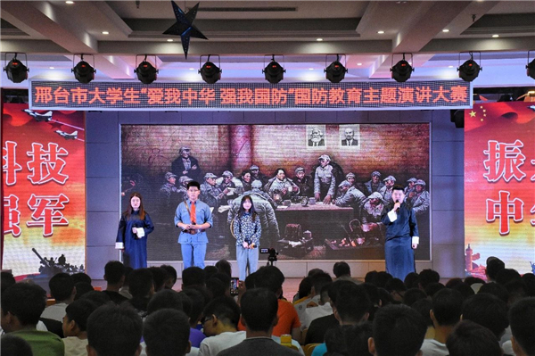 本次比赛共有来自邢台各高校30组选手参加。关心国防、热爱国防、建设国防、保卫国防,选手们围绕“赞颂辉煌成就,军民同心筑梦”的主题讲述国防的故事,获得台下热烈的掌声。