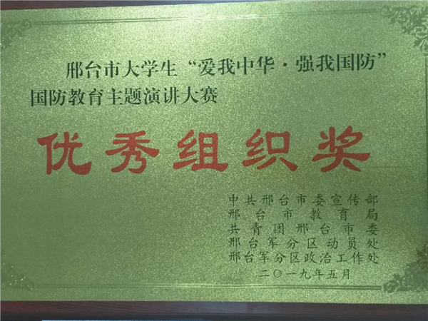 5月30日,由中共邢台市委宣传部、邢台市教育局、共青团邢台市委、邢台军分区动员处和邢台军分区政治工作处共同主办的庆祝新中国成立 70 周年邢台市大学生“爱我中华·强我国防”主题演讲比赛在邢台市特殊学校礼堂举行。经过校内选拔,欧宝官方体育app下载ios 选派四组选手共七名同学参赛。
