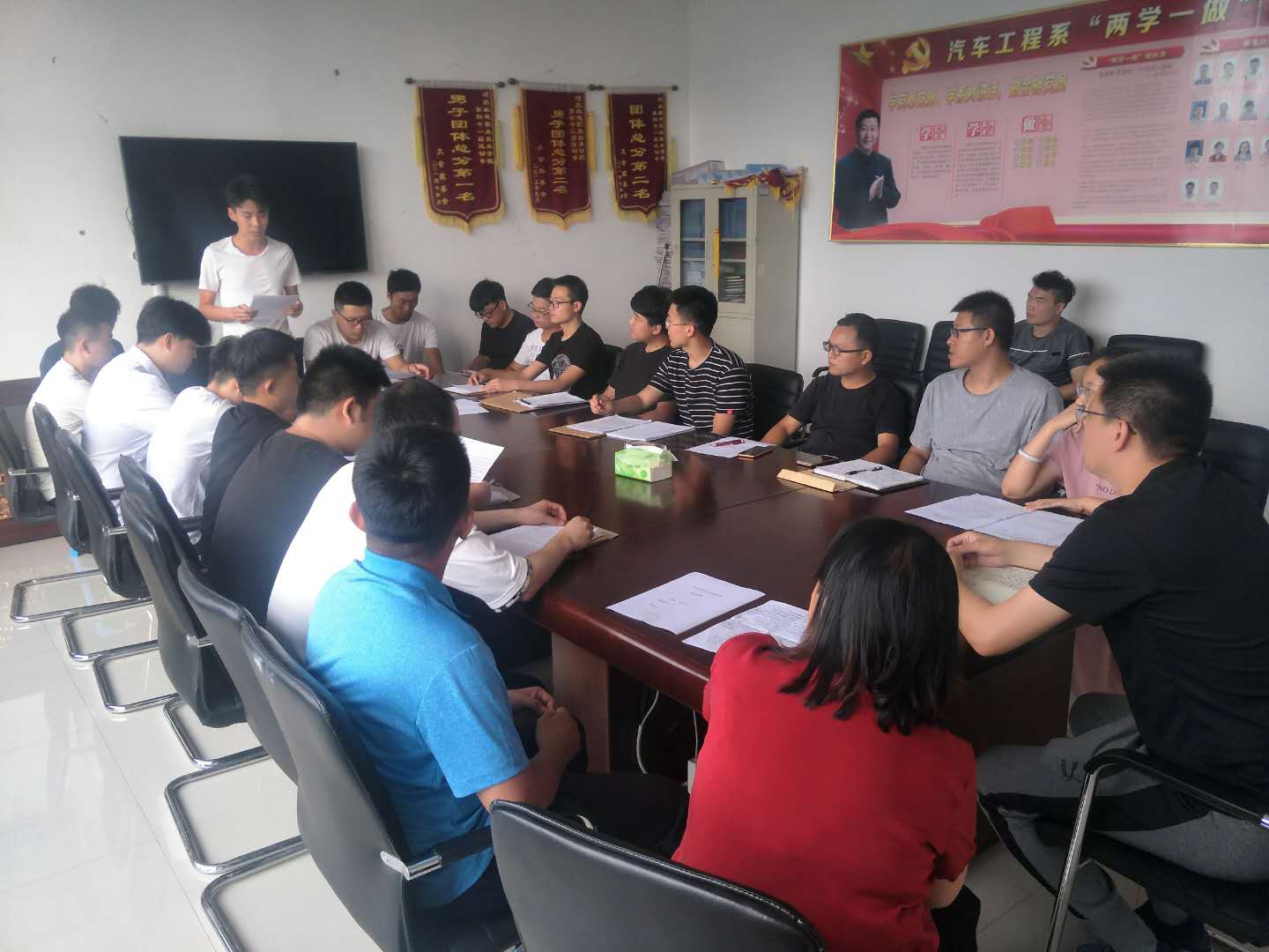 6月17日下午五点,汽车工程系学生党支部召开支部党员大会,讨论关于表决、吸收董富学等15名预备党员预备期满转为正式党员的事宜。汽车工程系副书记彭君,组织专员胡思啸,辅导员马涛、王军杰、杨学新、孙建莉等老师,汽车工程系学生党支部正式党员李永杰、李艳超等同志以普通党员的身份参加会议,会议由胡思啸主持。