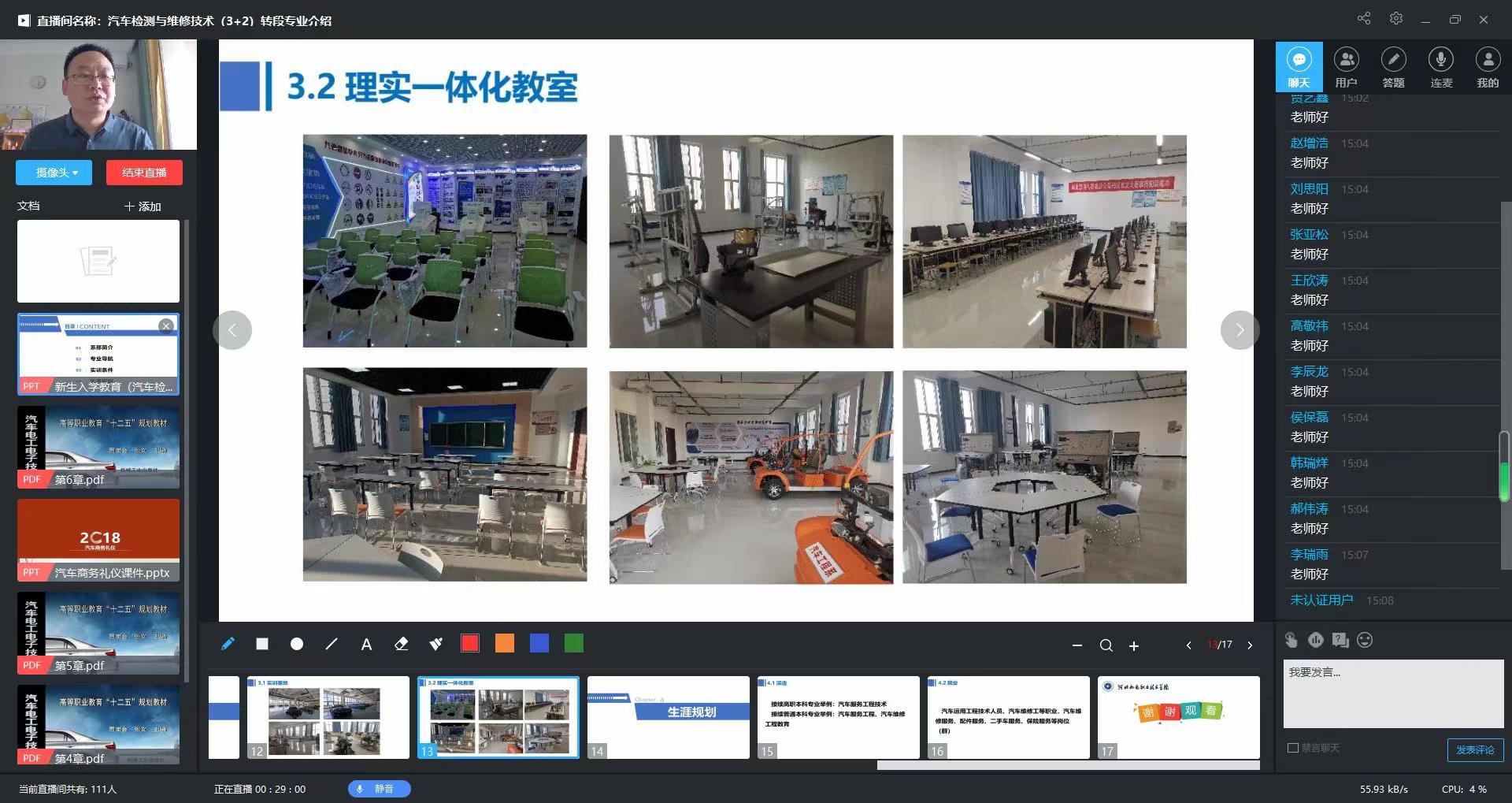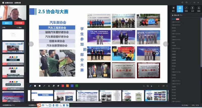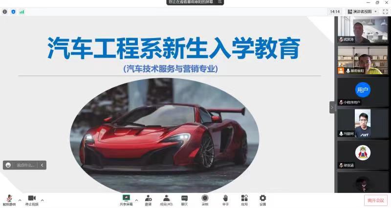 汽车工程系专业老师分别从理想信念教育、专业导航教育、生涯规划教育三个方面分专业与新生进行了线上交流。老师通过精心制作的课件从理想信念、道德养成、专业概况、专业课程、实训条件、技能比赛、专业特色生涯规划等方面为新生做了详细又精彩的讲解。并对学生关心的问题进行了耐心解答。