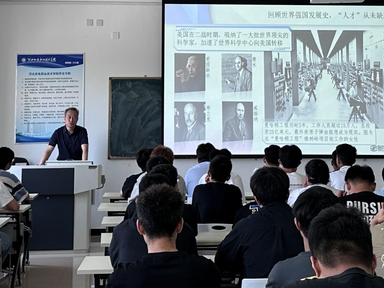 李朝鹏以《聚天下英才,筑强国之基》为题,从洞悉大势,人才强国的战略考量;立足当下,人才发展迈入新阶段;谋篇布局,聚天下英才而用之三个方面,结合实际案例和具体数据为同学们讲明:人才是第一资源,同时教育、科技和人才为现代化建设提供战略性支撑,成为国际竞争的至关重要的变量;如今,我国已经成为人才资源大国,人才效能稳步增强,新时代人才培养目标和新时代人才工作的短板逐步显现;我国在深化人才发展体制机制改革,加快建设国家战略性人才力量,全方位培养、引进、用好人才,努力营造识才爱才敬才得环境。