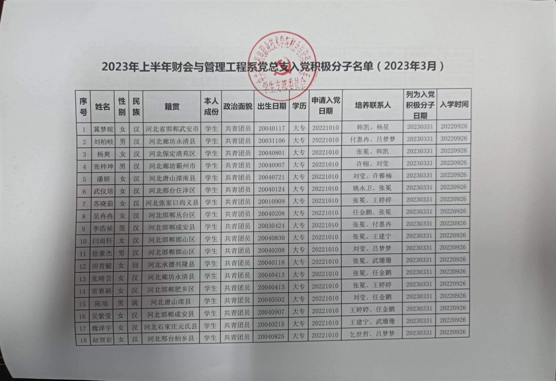 中共欧宝平台app苹果版 财会与管理工程系学生支部委员会
