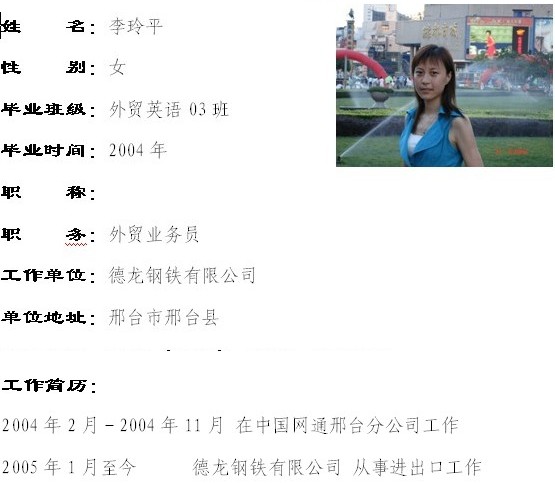 外贸英语03班毕业生——李玲平