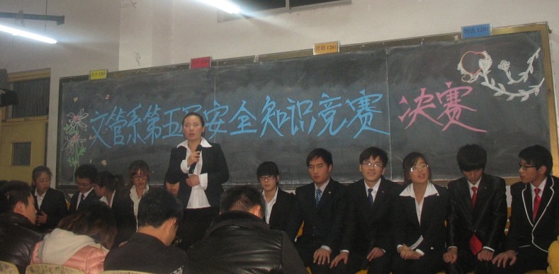 为了普及安全知识,增强我系学生安全意识,加大平安校园的宣传力度,营造和谐校园氛围,人文与管理工程系于2012年12月10日,在三教第四合班教室举办了第五届安全知识竞赛。出席本次活动的有大二年级辅导员杨星老师、大一年级辅导员吴迪老师,以及我系学生会主席莫凡、副主席李志奇、孙晓宇等学生会干部。