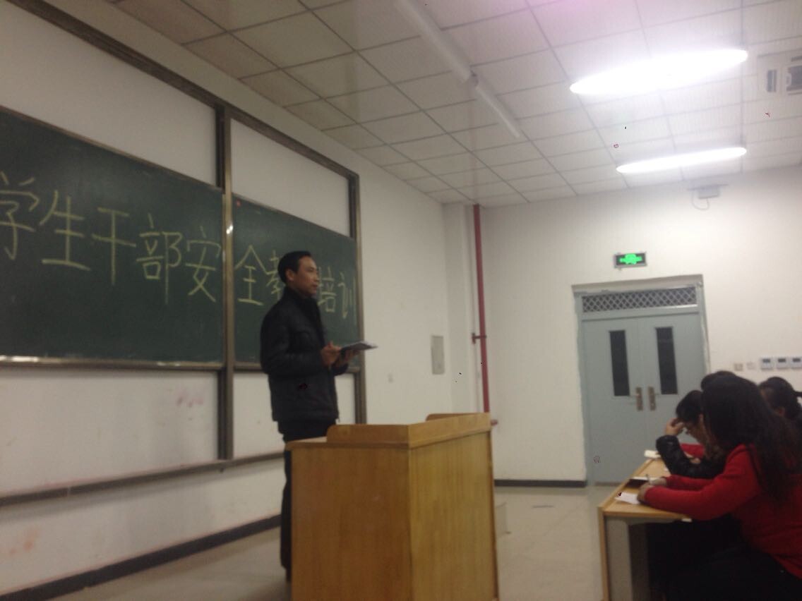 随后,李书记主要针对目前和寒假期间学生安全问题进行了重点强调。主要从用电安全、交通安全、宿舍安全、消防安全、饮食卫生安全、传销安全、网恋安全、滑冰安全、室外活动安全、心理健康安全、自然灾害的自护自救安全及交友安全等十二个方面上,结合当今学生自身的实际情况和社会真实案例,用通俗易懂且具有安全教育意义的语言,全面、详细地对在座的学生干部进行讲解,告诫同学们引以为戒,切实把广大学生的自身安全放在首位,做到预防在先,制度先行,照章办事。除此之外,李书记还对公寓管理、教室卫生、环境卫生、学生文明、爱护公物等学生常规工作进行了强调,希望学生干部把会议内容传达给每一位同学,并协助辅导员做好班级的全面管理工作,学生干部要做好老师的助手,在安全问题上要做好“宣传员”,进行宣传,做好“信息员”,及时发现问题并反馈,做好“管理员”,尽到应尽的责任,做好各项安全工作。