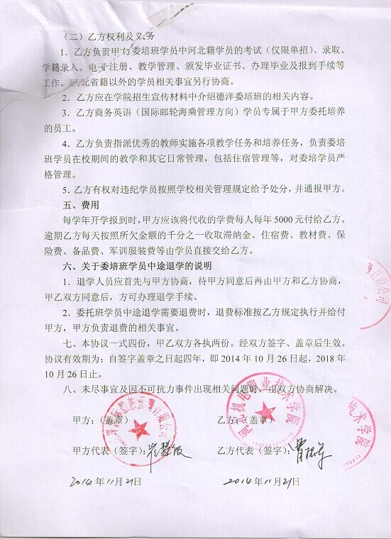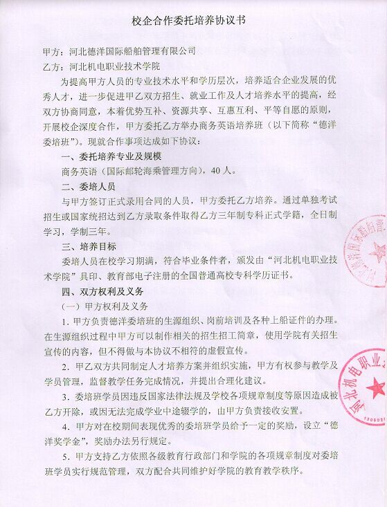2015年商务英语(国际邮轮委培班)校企合作协议