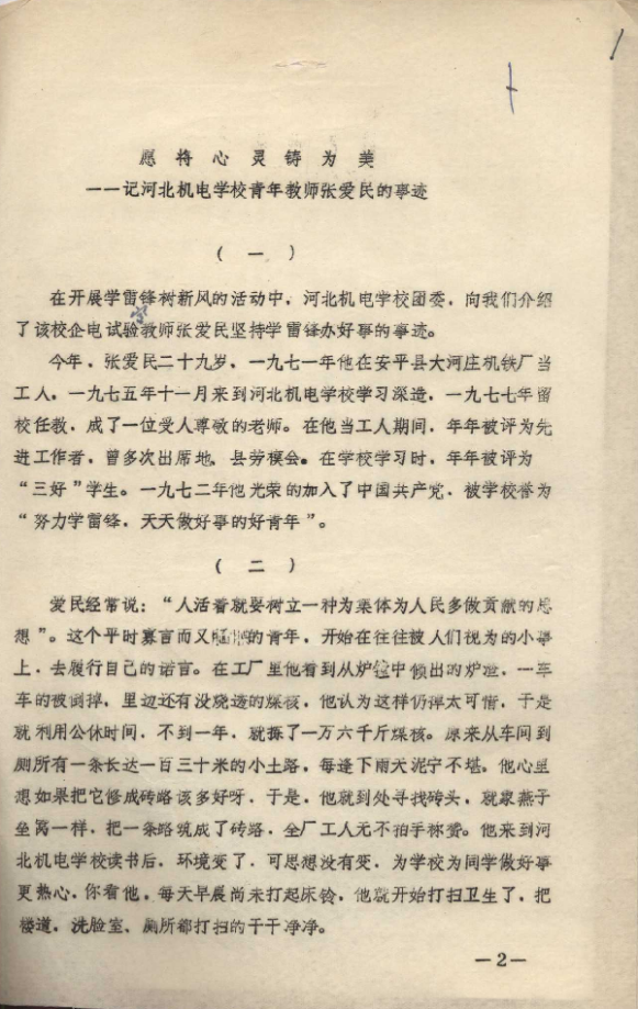 张爱民,1971年,在安平县大河庄机铁厂当工人;1972年,他光荣的加入了中国共产党,巧合的是,同年学校搬迁至邢台市,校名为“河北欧宝官方体育app下载ios 学校”;1975年11月,他到河北欧宝官方体育app下载ios 学校学习深造;1977年,他选择留校任教,成了一位受人尊敬的老师。