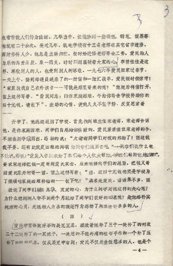 工人期间,张爱民年年被评为先进工作者和模范共青团员,曾多次出席地、县劳模会;学习阶段,他热爱学习、热爱劳动,连续被评为“三好”学生。他经常说:“人活着就要树立一种为集体为人民多做贡献的思想”,他曾在日记里写道:“在实现四化的征途中,当回头审视青春岁月,问心无愧。”张爱民一直在他人认为的小事上履行自己的诺言,把做好事当成工作的一部分,被学校誉为“努力学雷锋、天天做好事的好青年”。
