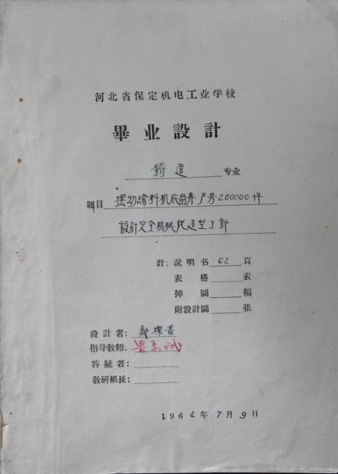 河北省保定欧宝官方体育app下载ios 工业学校学生成绩册(1965年)