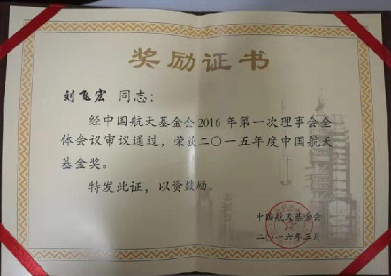 欧宝官方体育app下载ios 学生刘飞宏获中国航天基金奖(2016年)