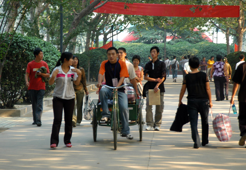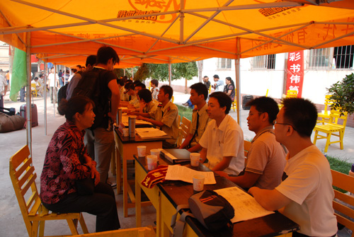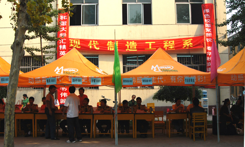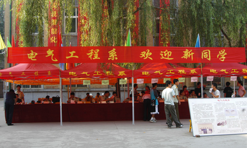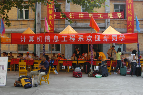 9月3日一大早,各系接待的桌椅均已整齐地排列在指定地点,师生们个个精神饱满,面带微笑,等候着新同学的到来。
