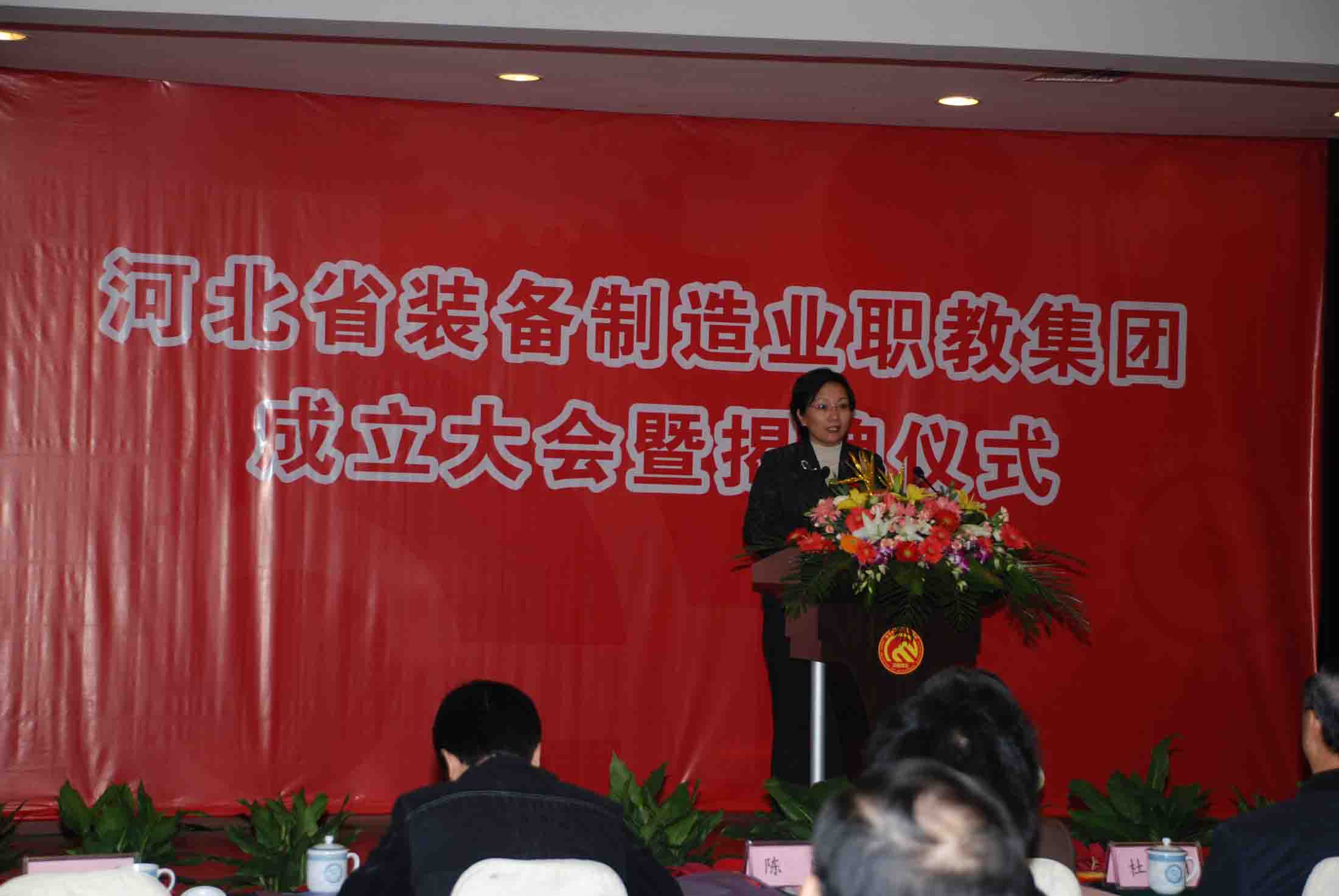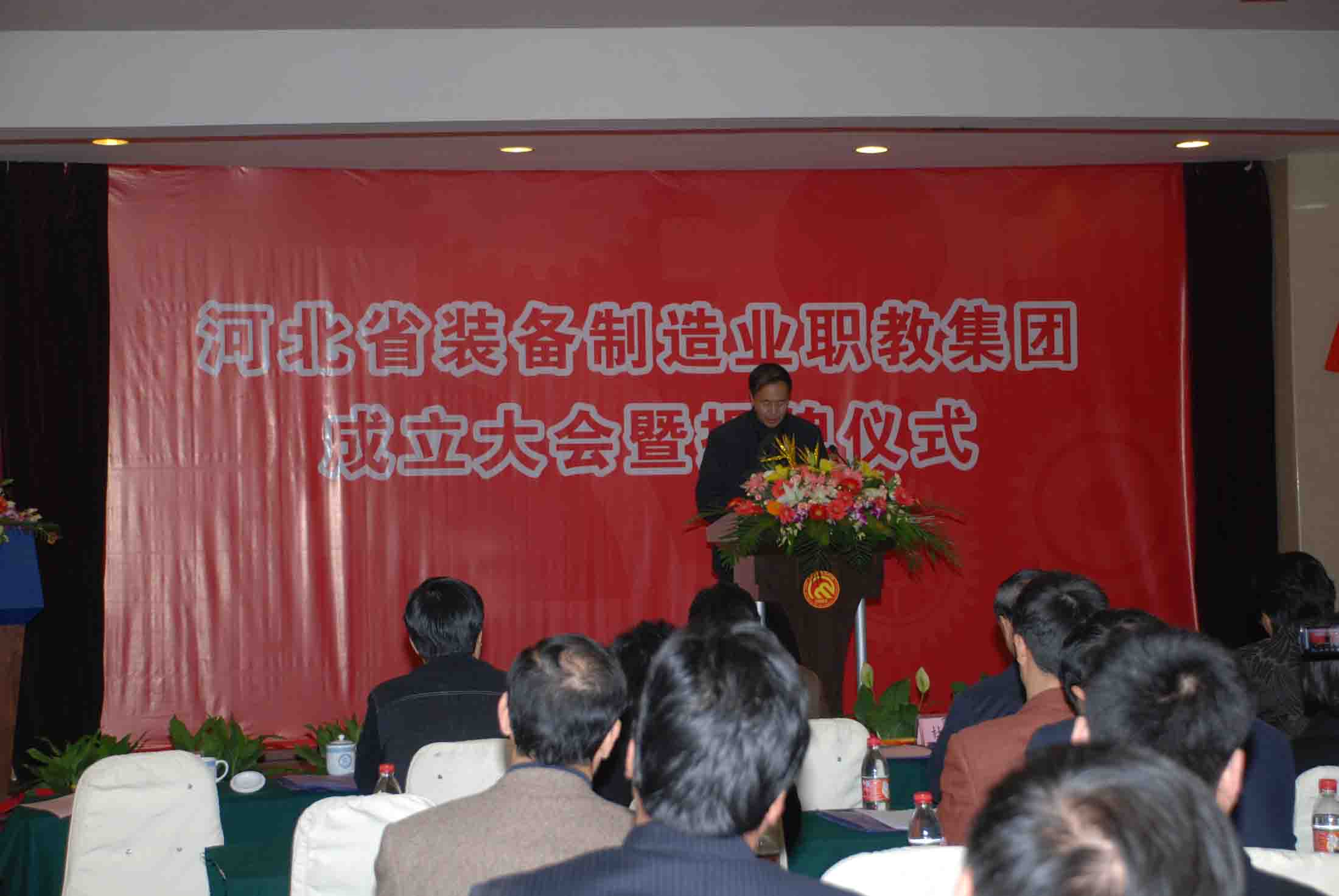 会上,河北省教育厅职成教处处长王晓飞同志宣读了河北省教育厅“关于成立河北省装备制造业职业教育集团的批复”。原河北省机械工业厅厅长杜书箱同志和邢台市委常委、市政府副市长常丽虹同志为河北省装备制造业职业教育集团揭牌。