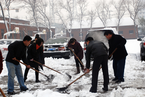 党委书记赵建彬带头清扫积雪
