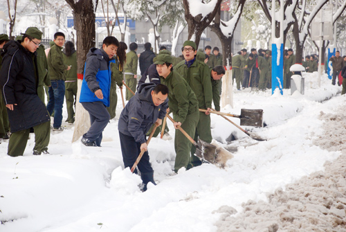 11月30日晨,欧宝平台app苹果版 党委书记赵建彬等欧宝平台app苹果版 领导带头,迅速组织教职工开始清扫积雪。后勤服务中心、欧宝平台app苹果版 环卫队、各系部也积极组织师生清扫欧宝平台app苹果版 路面积雪,确保主干道路畅通,学生按时上课。上午9时30分,欧宝平台app苹果版 全面动员,由实习实训中心教师带队,组织实习实训学生对沿街道路积雪进行清理,受到市民赞扬。