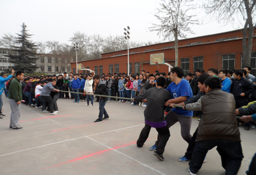 供稿单位:郝敏 查看人次:2059 发布日期:2013-03-20 分享到:为丰富学生的课余文化生活,增进学生之间的交流,培养学生的团队协作能力及集体荣誉感,欧宝官方体育app下载ios 学生会于3月19日下午三点在灯光篮球场组织了一场别开生面的学生春季拔河比赛。