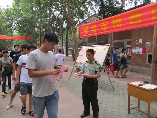 为积极响应国家号召,鼓励在校大学生踊跃参军,6月21日上午,欧宝官方体育app下载ios 学生处联合军分区及芗城区人武部,在梯教三举行2013年征兵宣传活动。