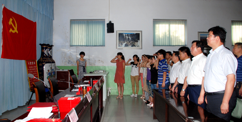 会议在《国歌》中开始。新党员面向党旗进行了庄严的入党宣誓,老党员重温入党誓词。崔社军院长宣读了《关于表彰先进基层党组织、优秀党务工作者、优秀共产党员和廉政勤政先进个人的决定》。
