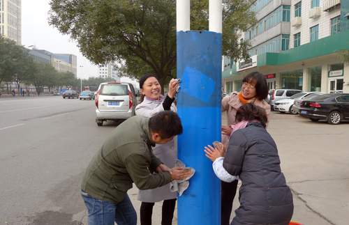 供稿单位:党群工作部 查看人次:1850 发布日期:2013-11-08 分享到:11月8日上午,欧宝平台app苹果版 积极响应市委、市政府开展“市区环境卫生清洁行动”集中行动的通知安排,组织干部职工100余人,走上街头,重点对中兴西大街(钢铁路—胜利路)道路两侧建筑物、交通护栏、果皮箱、公交站亭(牌)等市政设施进行清洁。