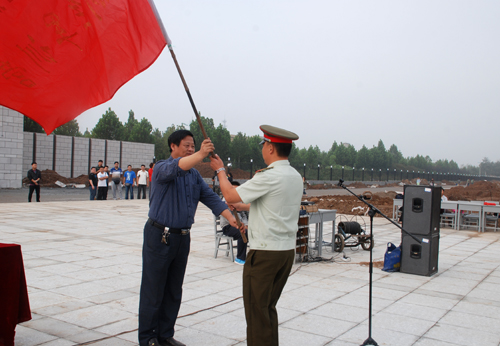 党委副书记徐丙谦向新生军训营营长李江授旗,李江营长代表全体参训教官承诺:全体教官将忠于职守、严于律已、服从指挥,严格要求,刻苦训练,发扬艰苦奋斗的优良作风,争创佳绩。