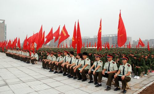动员会后,为期12天的军训正式拉开帷幕,2013级新生将进行队列、分列式、军事理论、安全教育、内务整理、歌咏比赛等科目的训练和考核。(图文:周景辉)
