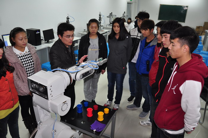 投资38.5万元新建了机器人实训室,不仅能够完全满足本专业教学要求和对企业职工的技术培训,而且还可以为相关项目的研发提供平台。