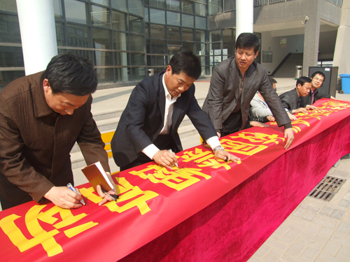 仪式上赵国增副院长做了重要讲话,为更好地在同学们中间开展禁烟控烟活动提出了几点要求:一是院学生要严格遵守学校的禁烟规定,严禁在禁烟区吸烟;二是各系部要加大宣传教育力度,建立长效机制,辅导员要利用学生干部培训、专题班会对学生进行积极引导,教育学生严禁违规抽烟;三是各系要成立相应的机构,负责本系学生的禁烟督查工作;四是学生干部、党员、积极分子要在禁烟活动中发挥积极作用,模范遵守各项规定,带头戒烟、带头劝阻身边的同学抽烟。五是严格执行学生违规抽烟的处理规定。随后,学生代表做了禁烟发言和致全院学生的禁烟倡议书,领导们带头在禁烟条幅上签字后各系学生积极踊跃的都在条幅上签下了自己的名字,表示要远离烟草,远离伤害。