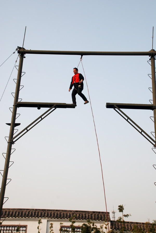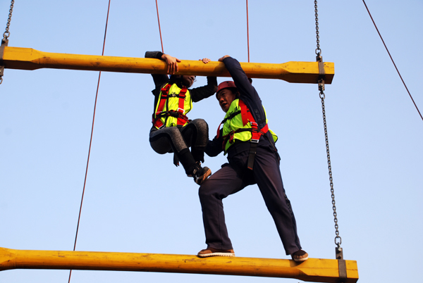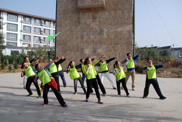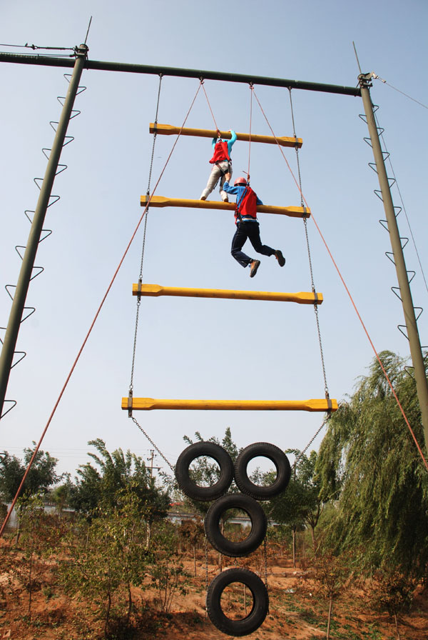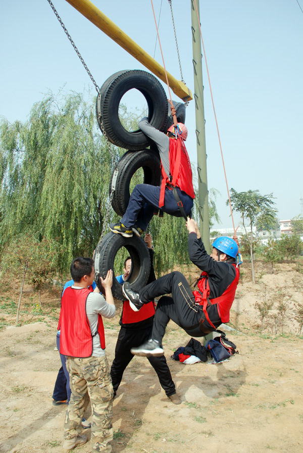 训练开始后,在专业教练的指导下,全体参训成员组成2支队伍,每支队伍快速制订各自队名、队歌、口号,形成了团队文化;选出了队长、副队长、队秘,形成了团队核心。训练中先后开展了高空断桥、攀爬天梯、穿越电网、毕业墙等拓展项目。