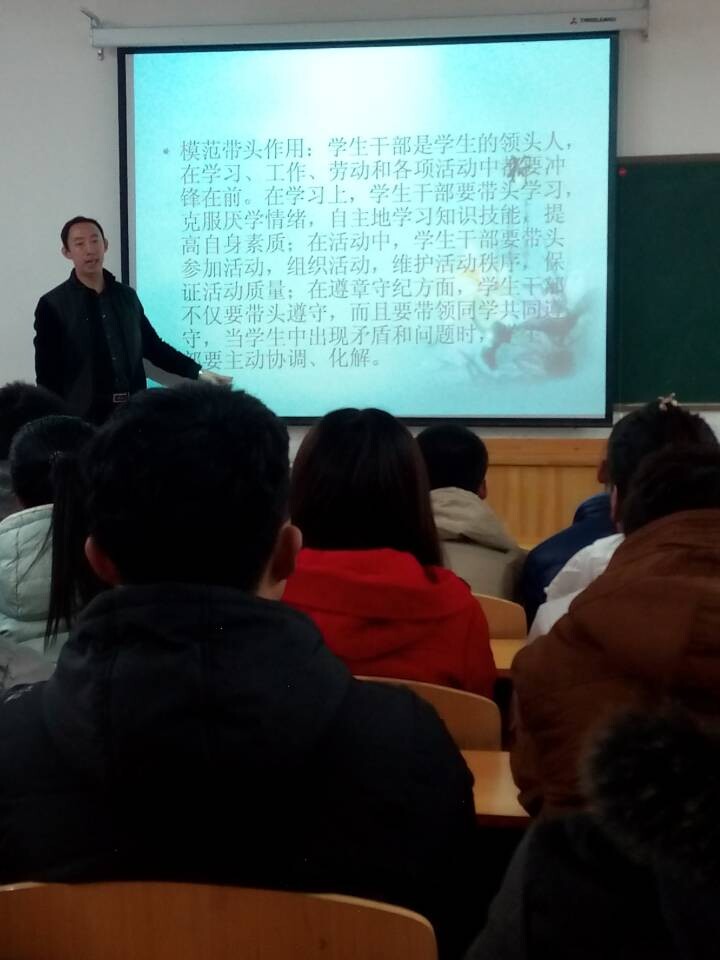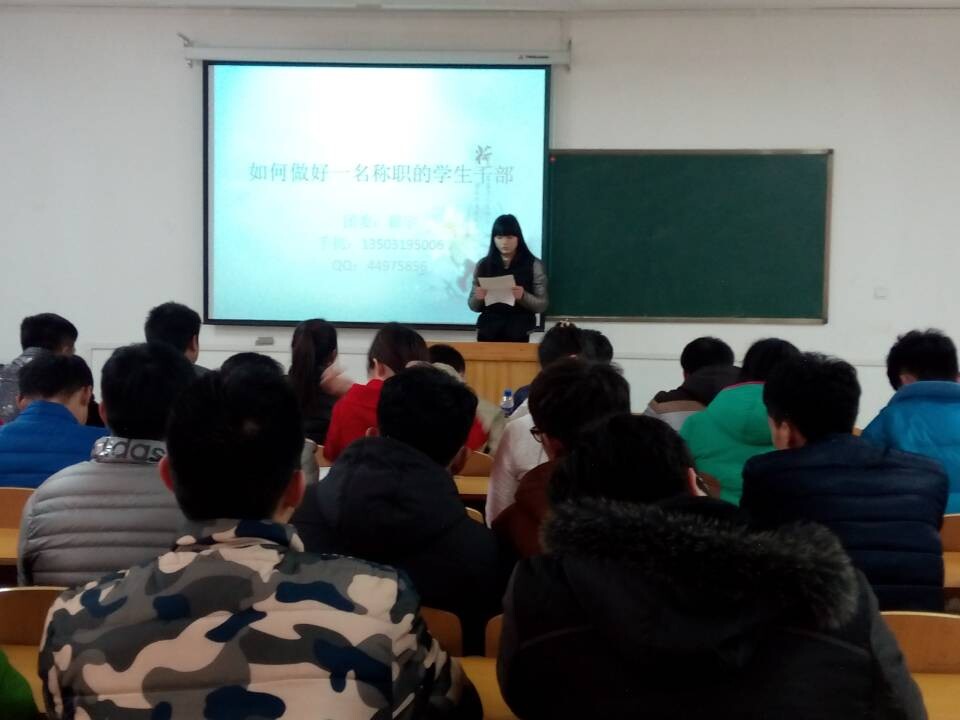 随后,籍宇老师结合自身的学习工作经历,以“如何做好一名称职的学生干部”为主题,对全体学生会委员提出了几点建议并传输了宝贵的工作经验。他指出:学生干部要以德为先,不断提高自身政治素养和思想道德品质;要不断学习,注重能力的培养;要以身作则,一切从自身做起;要有乐于奉献的精神,全心全意为同学们服务。