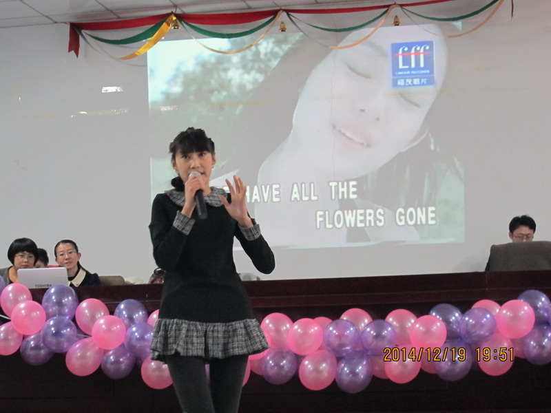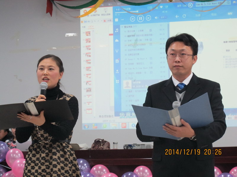 英语教研室全体教师倾情演绎的开场舞《小苹果》,拉开本次第二课堂活动的帷幕。西方饮食文化、交谊舞文化等知识的讲解,让学生对西方文化有了更深层次的了解;电气1405班王若平演唱的意大利歌曲《我的太阳》、英语教研室吴丽荣主任演唱的《My heart will go on》、李敏老师和张光老师的中英文朗诵《世界上最遥远的距离》、街舞等节目将活动推向了一个又一个高潮;现场领导、老师们积极参与《心有灵犀猜单词》、《踩气球》等互动游戏,引爆现场欢乐的气氛,不仅拉近了师生的距离,更体现了当代大学生大学生的青春活力;赵丽娟老师和软件1301班李想同学以中英文双语主持贯穿整场,将浓厚的西方文化气息展现的淋漓尽致。伴随经典名曲《夜曲》优美的旋律,基础课教学部的十位老师为大家奉献上了优雅的华尔兹,完美的拉下了本次活动结束的帷幕。