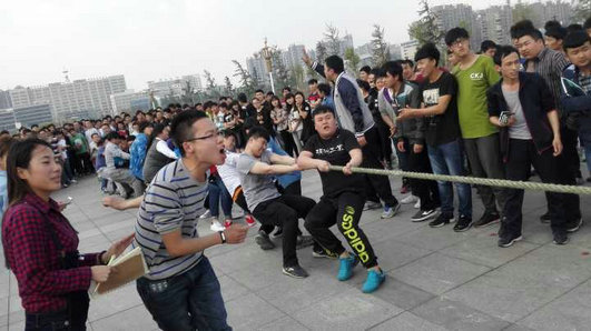 供稿单位:团委 查看人次:1914 发布日期:2015-05-19 分享到:为丰富同学们的课余文化生活,增进同学们之间的交流,培养同学们的团队协作能力,展现大学生积极向上的精神风貌,按照团中央、团省委开展大学生“走下网络,走出宿舍,走向操场”大学生主题课外体育锻炼活动的要求,由院学生会主办的 “放下手机,走向操场”拔河比赛于 2015年4月21日 拉开了帷幕。