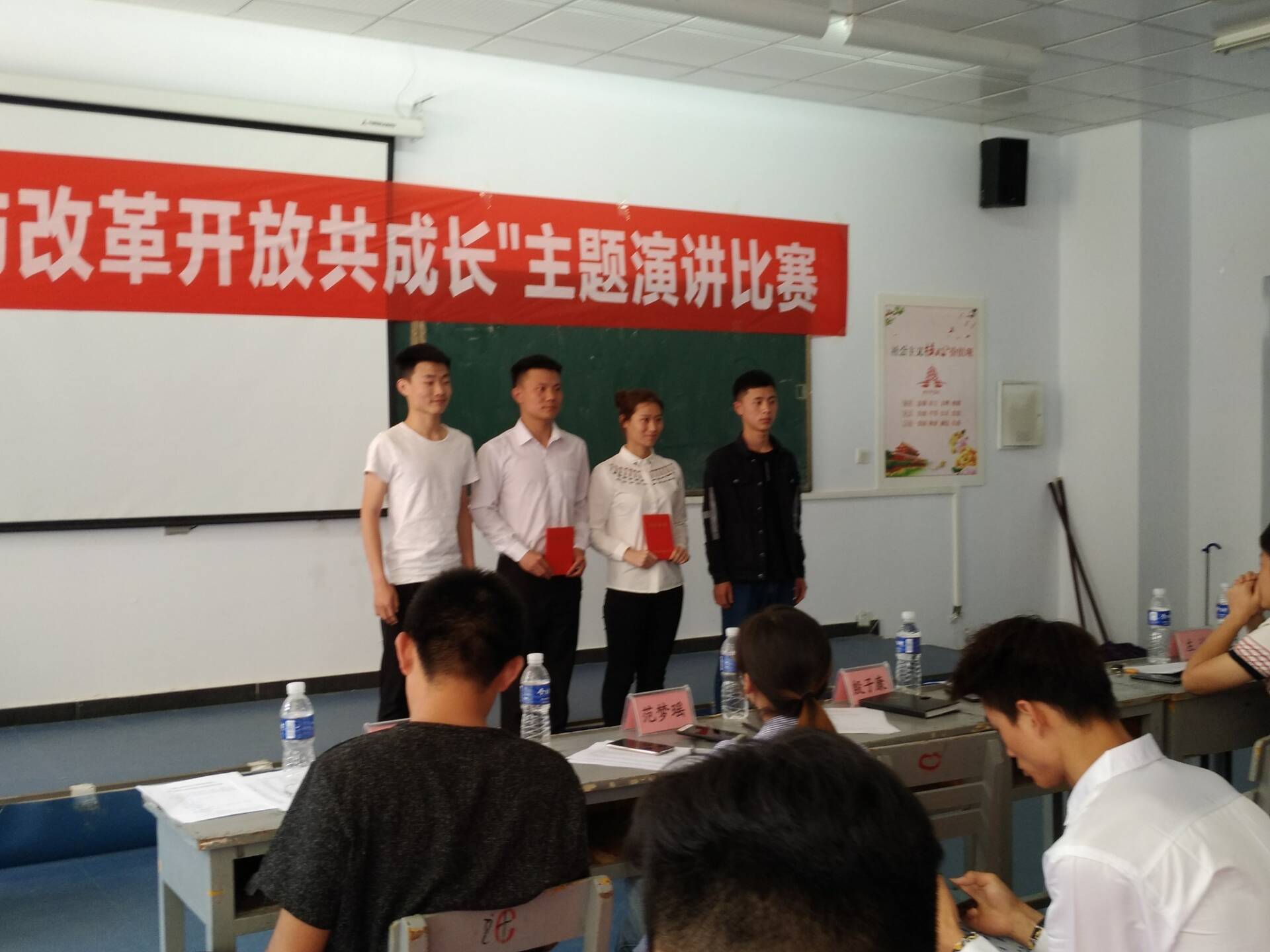 比赛中,财会与管理工程系两名选手准备充分,精神饱满、声情并茂,用充沛的感情把师生带进了我国改革开放的历史征程,从农村到城市,从试点到推广,从经济体制改革到全面深化改革,40年众志成城,40年砥砺奋进,40年春风化雨,中国人民用双手书写了国家和民族发展的壮丽史诗。财管系选手高思怡的演讲《在改革开放中放飞青春梦想》用饱含深情的语调抒发了自己作为一名在校大学生,改革开放为其带来的新的视角,从中国看中国、从中国看世界、从中国看自己,同时也坚定了对中国发展道路更强的自信和共识,也让在座的青年学生对自己有了新的认识。其精彩的演讲感染了台下观众的情绪,不断报以热烈的掌声。经过激烈的角逐,高思怡同学不负重望,成功夺得桂冠。