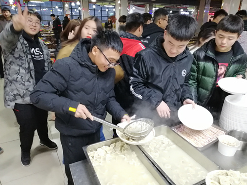 晚会结束后,全体师生进行了一次“家宴”,大家享受了一锅锅热腾腾的饺子,欢声笑语不断,在热闹温馨的气氛中共同迎接新年的到来。
