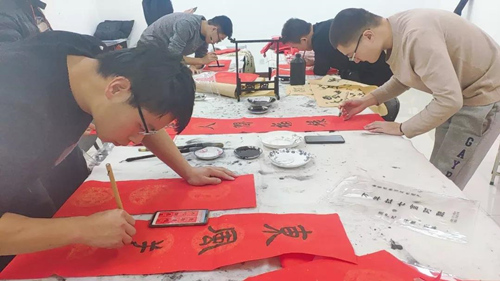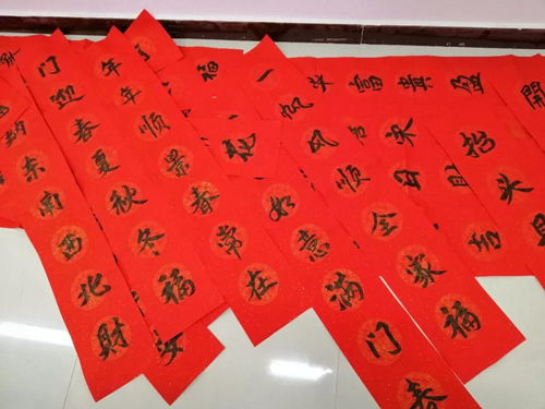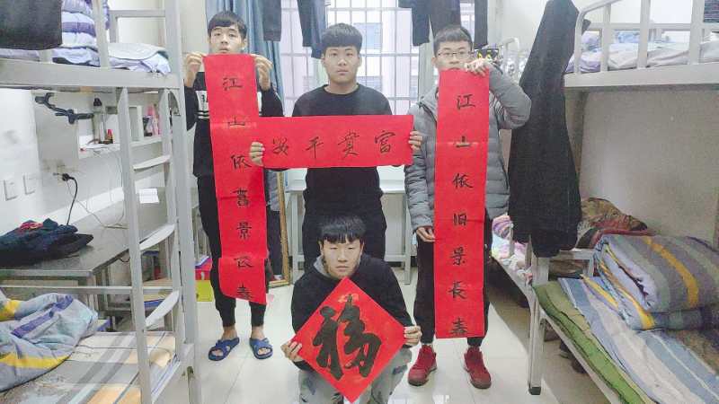 书法社成员把充满祝福的春联送到学生宿舍与学生公寓管理人员办公室,祝福他们新年快乐、万事如意。本次活动受到了老师、同学们的称赞和支持,迎春书法社团将把这项活动一年年坚持下去,让更多的师生参与到活动中来,让书法文化深入校园,师生交流更加密切。