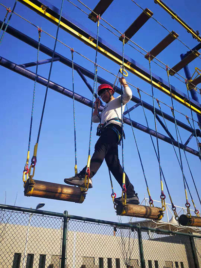 春天来了,在这富有生命韵律的季节,本次活动由欢快活泼的团队热身训练拉开帷幕。本次拓展活动包括高空攀岩、悬崖峭壁、天使之手、侧爬网、秋千桥、吊桩桥、U型绳桥等项目。社团成员分为两组,依次进行。成员们积极准备,共同谋划,认真对待每一个活动项目,尽团队最大努力完成拓展项目。
