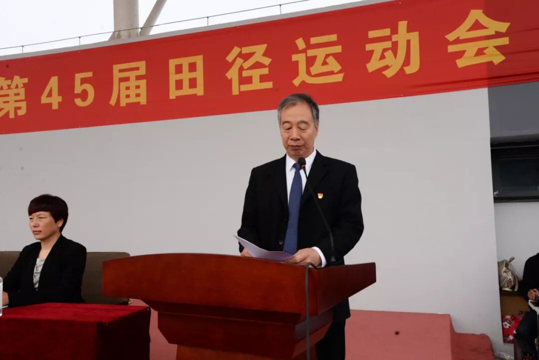 2018年4月,第45届田径运动会院长傅恒杰致开幕辞。