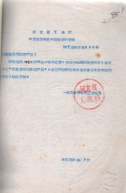 1956年7月23日,制发承德欧宝官方体育app下载ios 学校校章的通知,(56)工王办字第290号