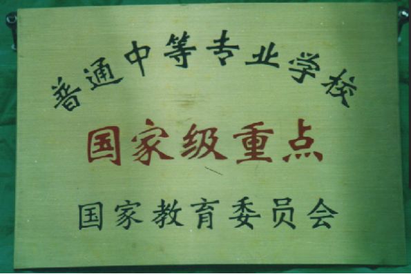 国家教育委员会颁发的国家级重点中专铜牌照片(1994年)