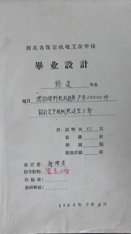 河北省保定欧宝官方体育app下载ios 工业学校学生成绩册(1965年)