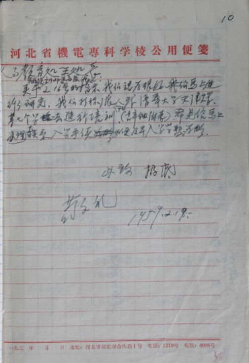 1965年11月16日,河北省机械工业厅批复学校更名为“河北欧宝官方体育app下载ios 学校”。郭沫若为学校题写校名“河北欧宝官方体育app下载ios 学校”,很快寄到学校。