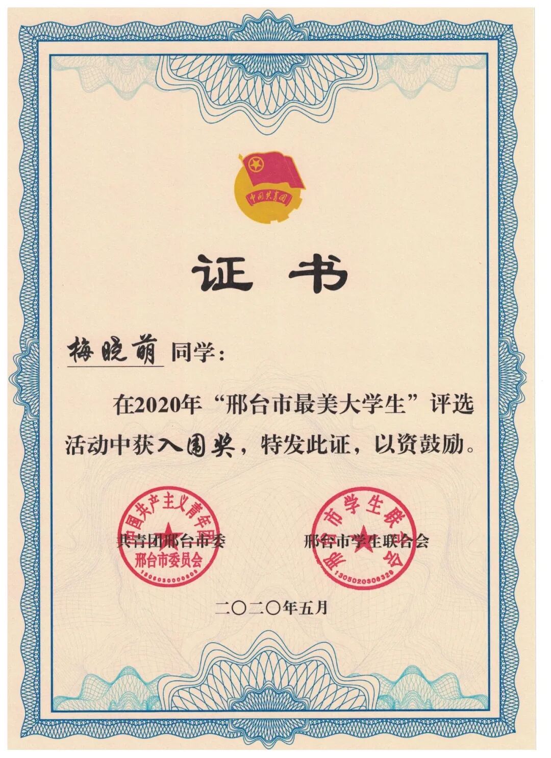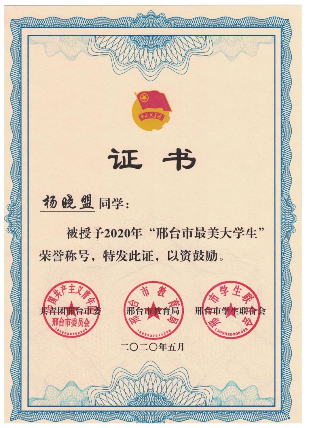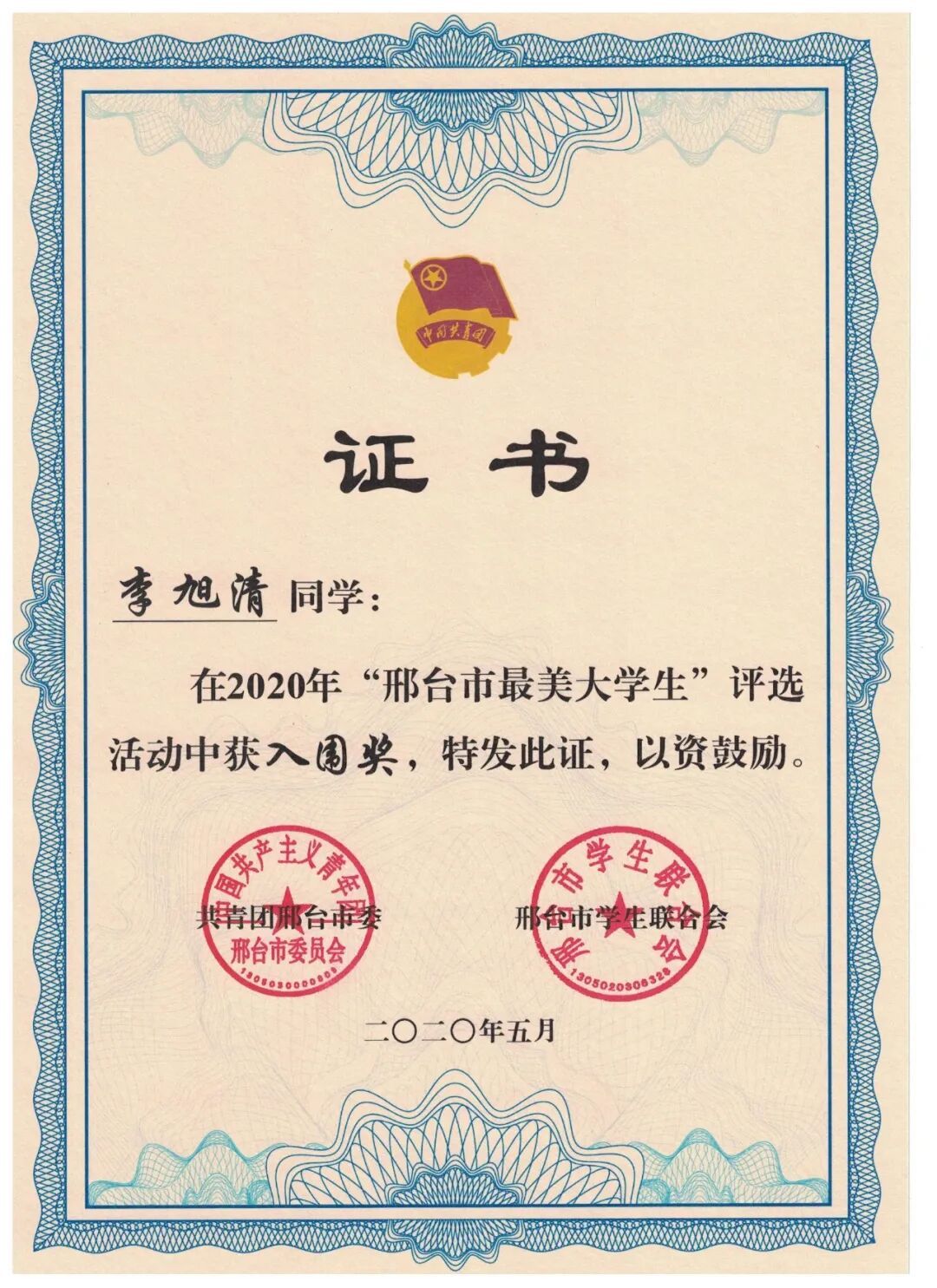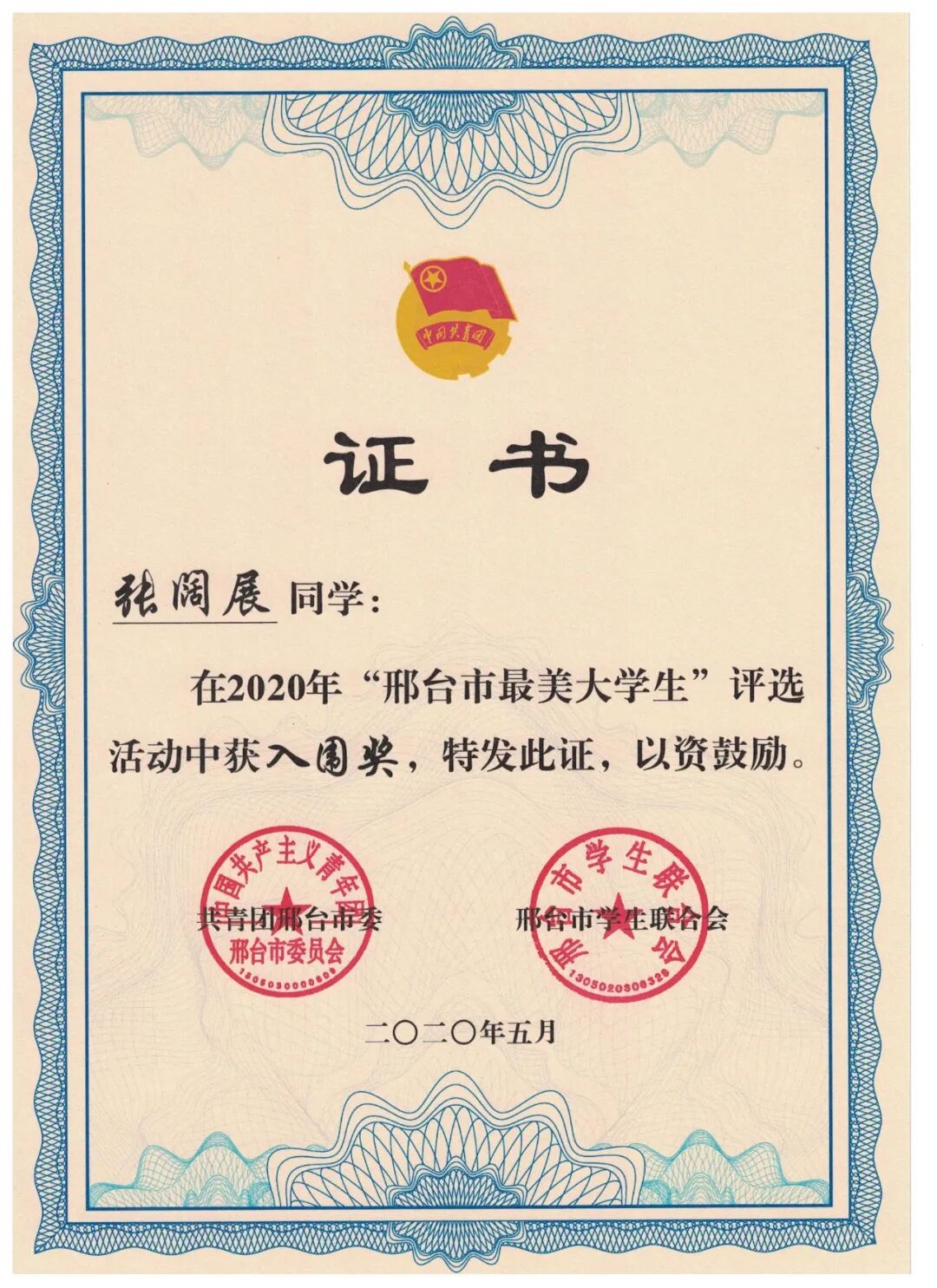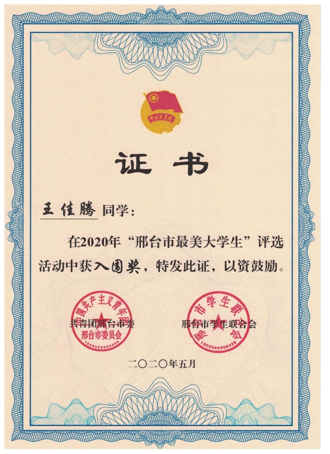近日,由团市委、市教育局、市学联秘书处共同举办的2020年邢台市“最美中学(中职)生”、“最美大学生”评选活动落下帷幕。此项活动于2020年4月启动,面向全市中学、中等职业学校、高校在校学生,寻访在热爱祖国、勤奋学习、科技创新、技术技能、志愿服务、热心助人、见义勇为、诚信友善、孝老爱亲、自强自立等方面表现突出的、自觉树立和践行社会主义核心价值观的“最美中学(中职)生”、“最美大学生”。经过寻访申报、材料初审、网络投票和综合评审,欧宝官方体育app下载ios 电气工程系赵国威、材料与建筑工程系杨晓盟荣获2020年邢台市“最美大学生”荣誉称号。