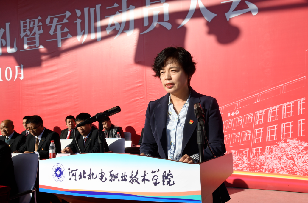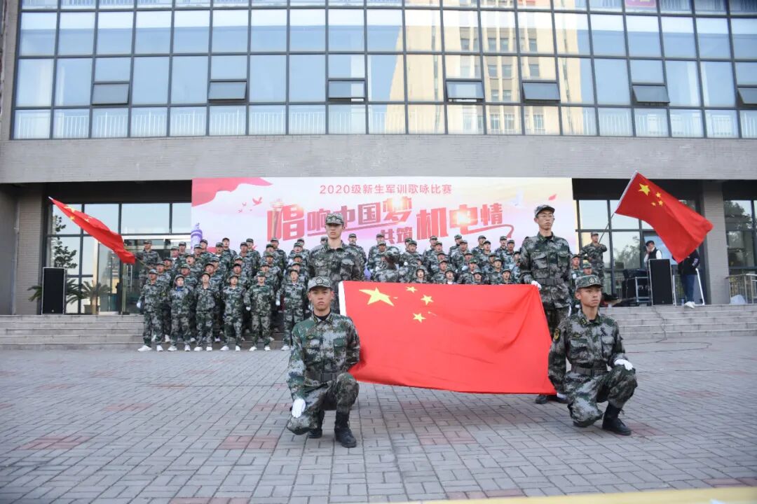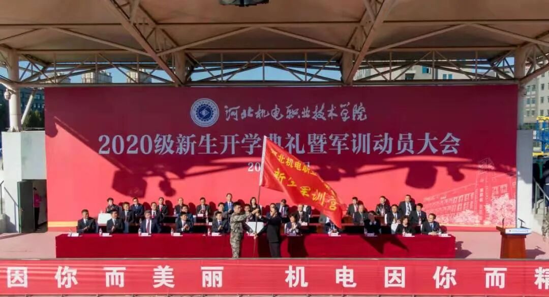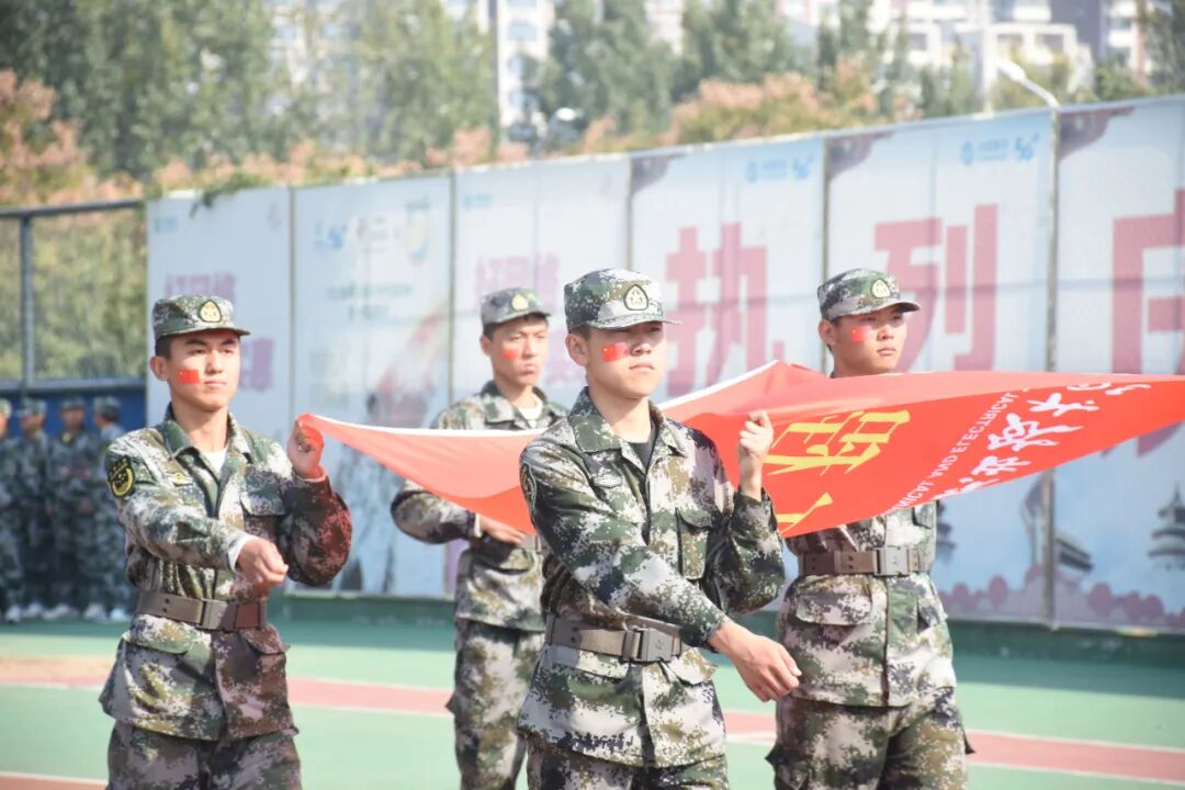 党委书记孟胜君向新生军训营授旗,2020级新生军训正式拉开帷幕。