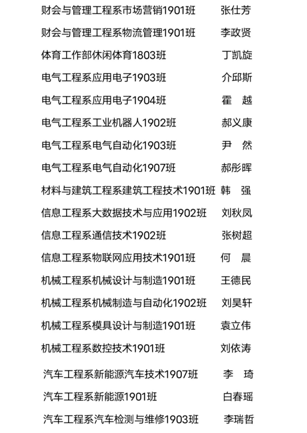 根据《河北省教育厅关于评选2020—2021学年省级三好学生、优秀学生干部和先进班集体的通知》(冀教德育〔2021〕2号)文件精神,学生工作部组织评审小组对各系部评审推荐的三好学生、优秀学生干部、先进班集体进行了审核、评选,现将拟推荐名单予以公示,公示时间2021年4月30日至5月7日,如有异议,请向学生工作部反映.