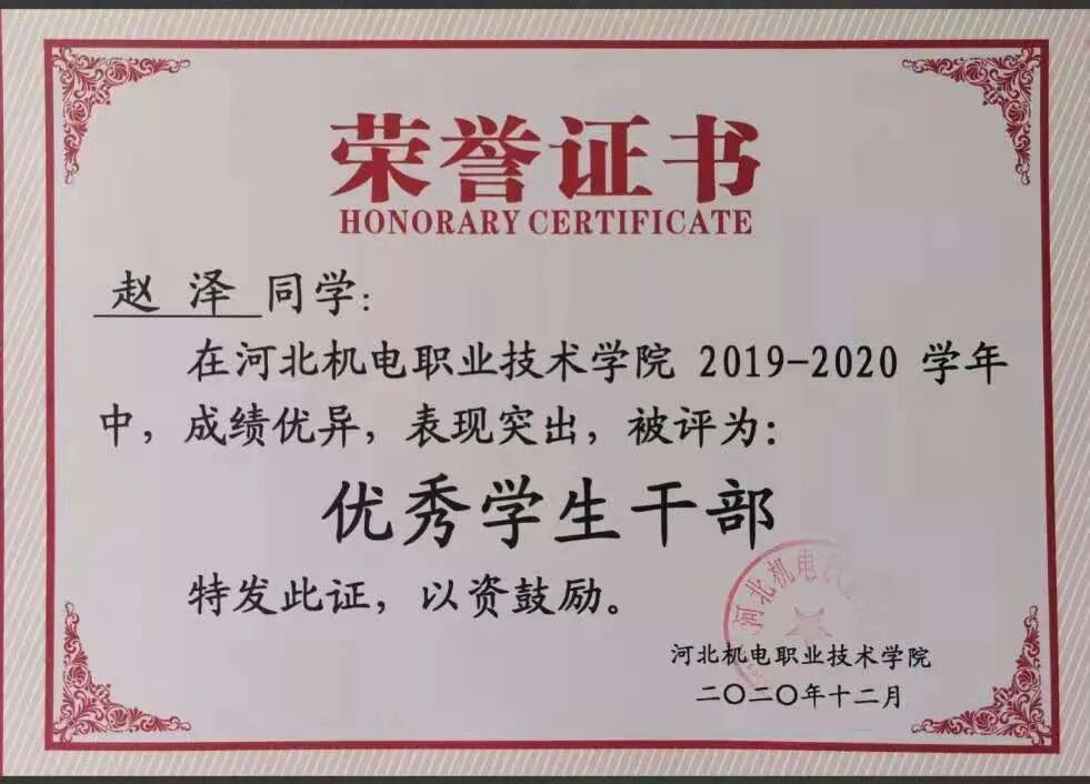 2019-2020年优秀学生干部