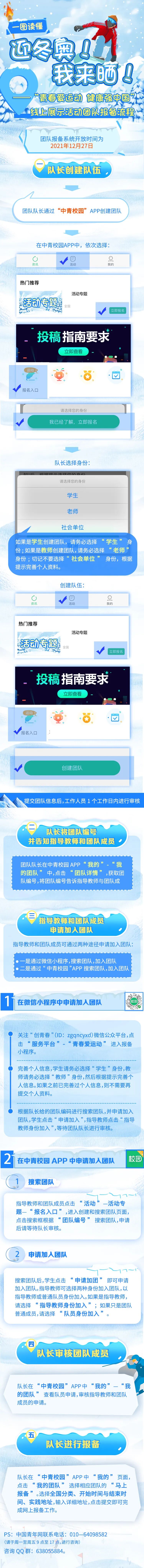 为进一步倡导青年大学生关注北京冬奥,普及奥运知识,弘扬奥运精神,积极践行“绿色办奥、共享办奥、开放办奥、廉洁办奥”理念,让大学生用实际行动来迎接北京冬奥会的举办。团中央青年发展部与中国青年报社联合主办迎冬奥!我来晒!——“青春爱运动 健康强中国”线上展示活动,活动拟实行团队(个人也可单独成团队)网络备案制度。